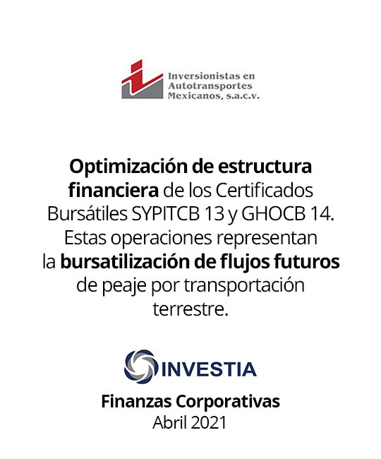 Hemos participado como Agente Estructurador en transacciones (privadas y públicas) por más de MXN $40,000 MM en capital y deuda